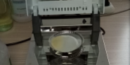 二、儀器本身有個(gè)自動(dòng)降溫過(guò)程,為求得數(shù)據(jù)的準(zhǔn)確性,故在進(jìn)行第二次測(cè)量的時(shí)候先等待幾分鐘,使儀器顯示溫度為40度以下時(shí)再進(jìn)行第二次測(cè)量,這次我們加大膠水樣品量為7.025克,將膠水均勻滴于鋁箔盤上,溫度照樣設(shè)定在120℃,按“START”鍵開(kāi)始進(jìn)行測(cè)試,由于這次的膠水量比較多,所以儀器此次用了17分鐘43秒才測(cè)試結(jié)束,測(cè)試結(jié)果數(shù)據(jù)顯示31.17%(含水率),按“單位鍵”切換其顯示數(shù)據(jù),則屏幕顯示其固含量為68.83%。