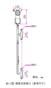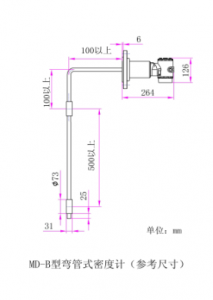 1: 直接式?在線液體密度計傳感器部分間距最少為200mm,直徑為50mm, 現(xiàn)場不能小于這些尺寸安裝,如選擇彎曲型密度計,請測量好可以伸進管內(nèi)的法蘭和長度尺寸.